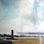 2024Paal 17 op strand Texel, olieverf op paneel 84 x 28