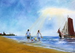 2013Ameland shore, de houten rand maakt onverbrekelijk deel uit van het schilderij.